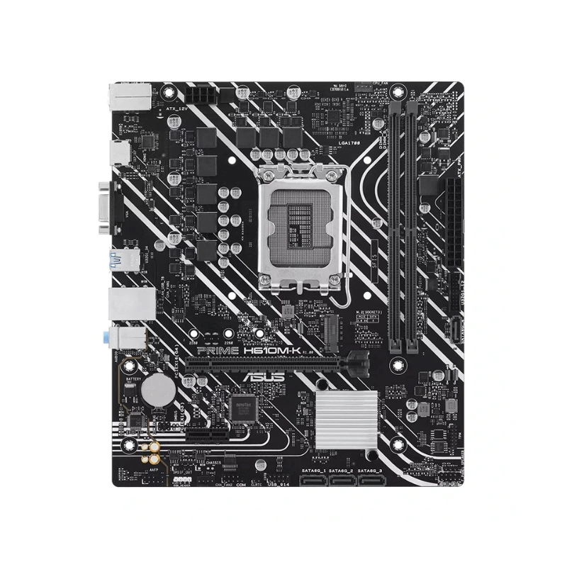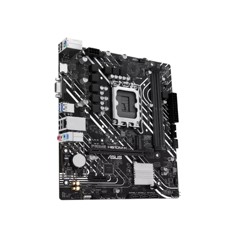 مادربرد ASUS PRIME H610M-K DDR5 یکی از گزینههای مقرونبهصرفه و کارآمد برای ساخت سیستمهای خانگی، اداری و نیمهحرفهای است که از نسل جدید حافظههای DDR5 پشتیبانی میکند. این مادربرد بر اساس چیپست Intel H610 طراحی شده تا عملکردی پایدار و قابلاطمینان در کاربردهای روزمره، گیمینگ سبک و برنامههای اداری ارائه دهد، بدون اینکه از نظر بودجه فشار زیادی به کاربر وارد کند. ترکیب تکنولوژی نوین با طراحی ساده و کاربردی باعث میشود این مادربرد برای کاربران مختلف، از تازهکار تا حرفهای، انتخابی مناسب باشد.